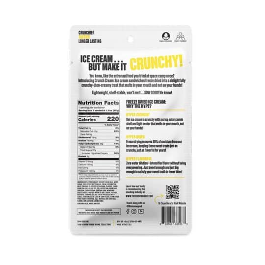 Jumbo Freeze-dried Ice Cream Sandwich! Sweet and crunchy Jumbo Vanilla ice cream sandwiches give you the tasty ice cream bars you love with a crunchy twist and more intense flavor!